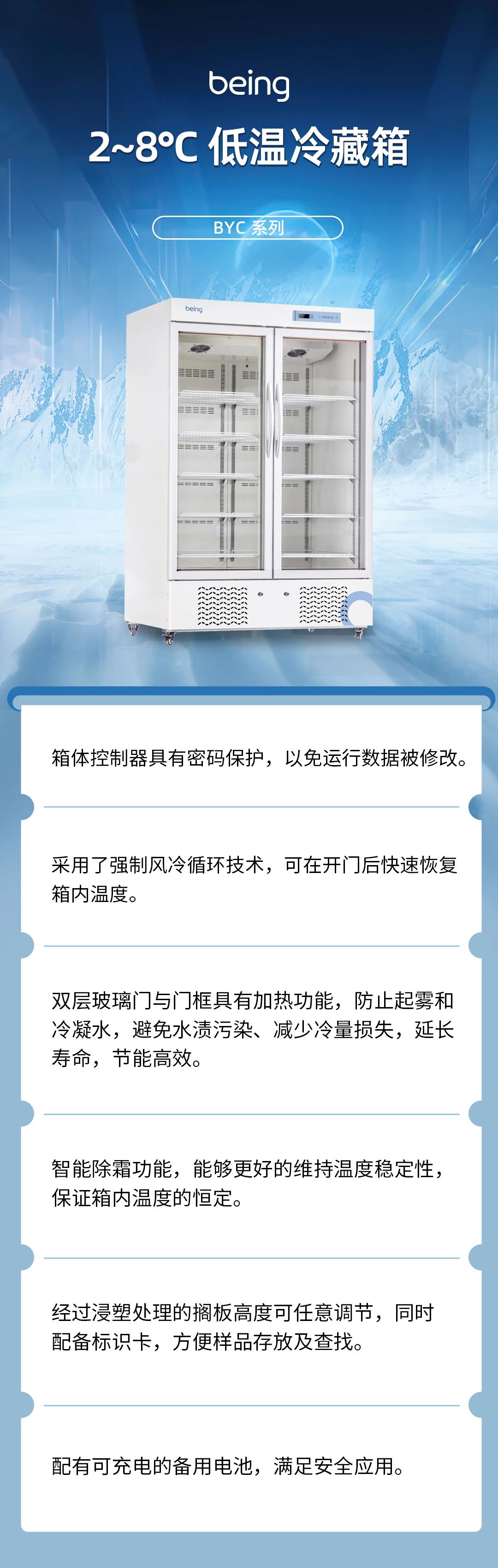 2~8℃低溫冷藏箱通過提供準確、穩定的2~8℃冷藏環境,確保對溫度敏感的物質保持活性、穩定性和有效性。