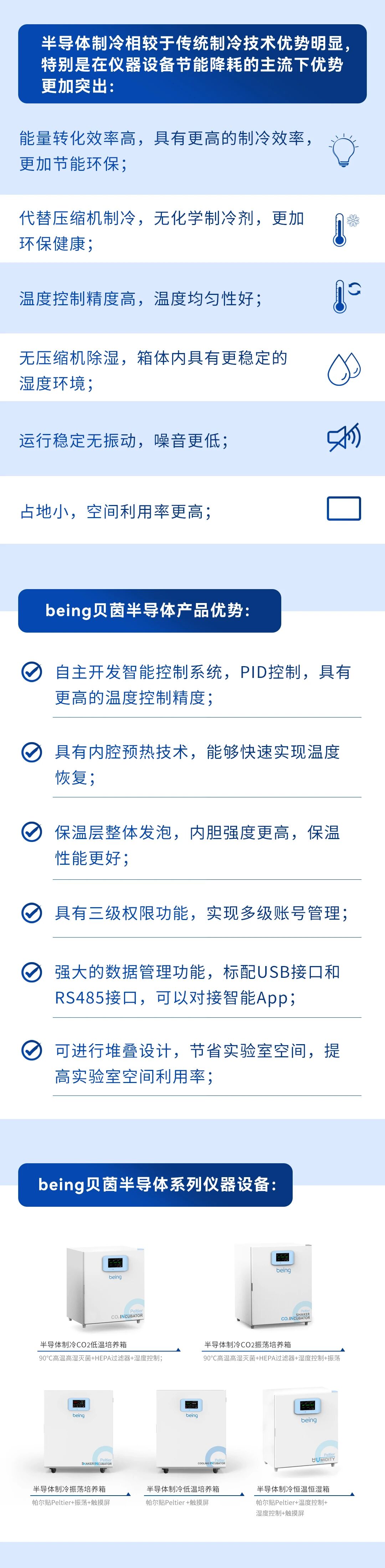 半導體制冷儀器設備利用帕爾貼制冷技術,實現對培養箱的低溫控制、濕度控制、氣體濃度控制、光照控制等,同時具有加熱和制冷功能,是需要低溫環境的細胞、細菌、微生物培養以及樣品存儲、植物栽培、生物育種、分子生物學研究中理想的恒溫設備。