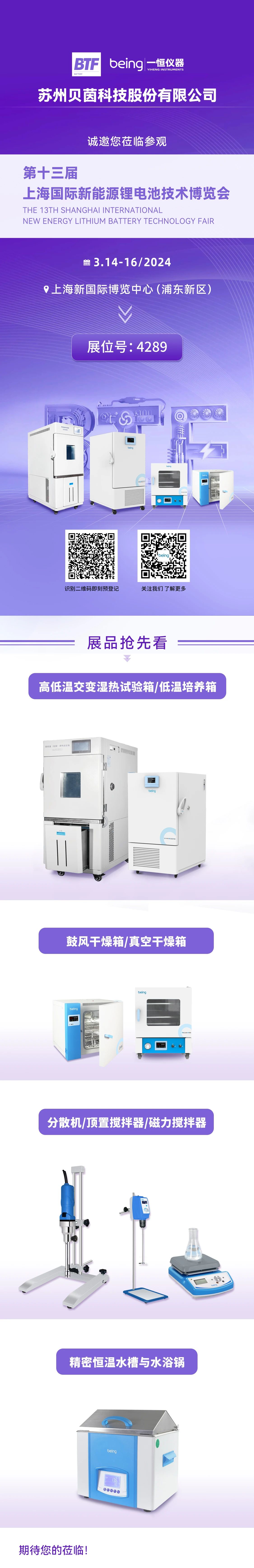 本次展覽會,貝茵科技將在E4館4289號展位,現場展示高低溫(交變)濕熱試驗箱,低溫培養箱,真空干燥箱,粘度計,磁力攪拌器等儀器設備。期待您蒞臨現場,參觀指導,交流合作!