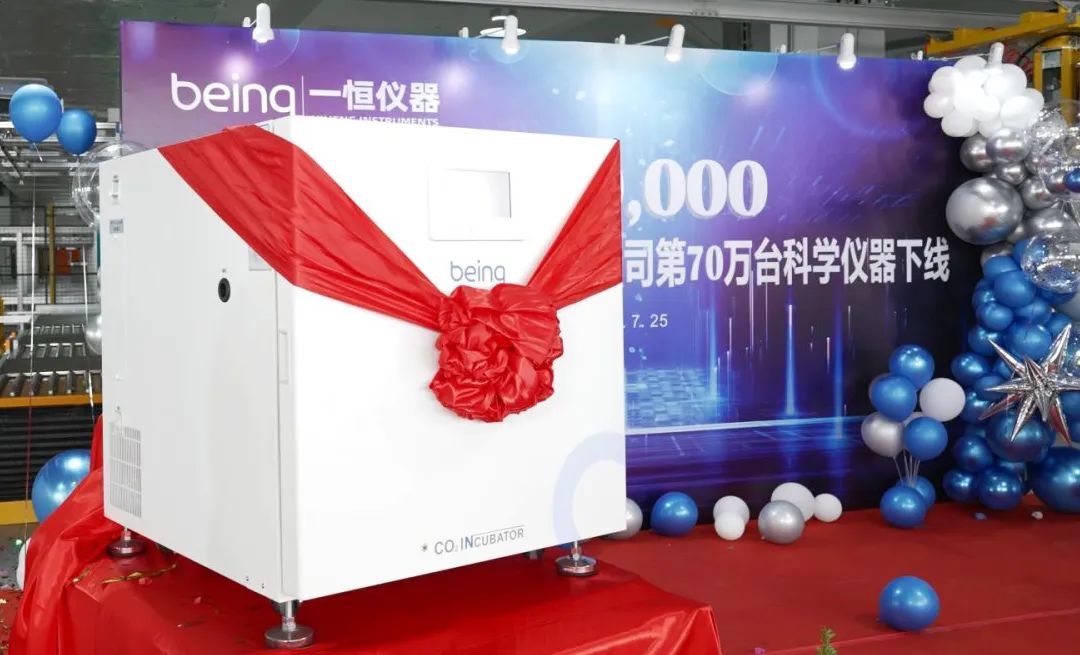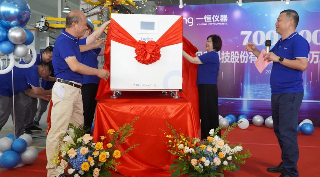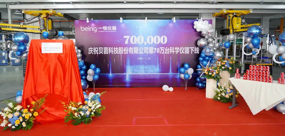 7月25日貝茵科技在新建智能車間慶祝公司第70萬臺科學儀器下線。